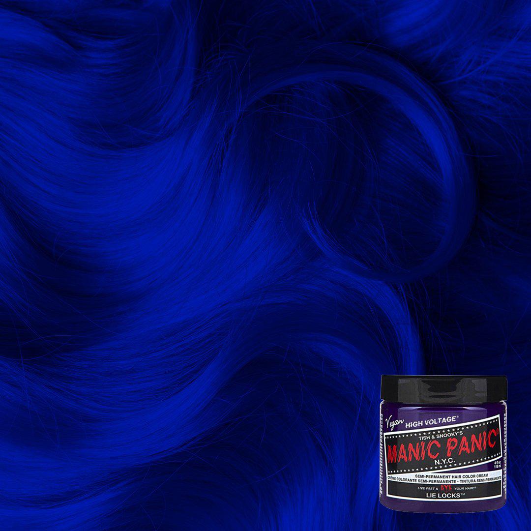 Lie Locks is a cool, medium indigo purple-y blue hair dye. Lie Locks can add indigo hues to virgin, unbleached hair. For best results, we recommend lightening hair to a very light level 9 blonde and toning hair before use to prevent unwanted hues.